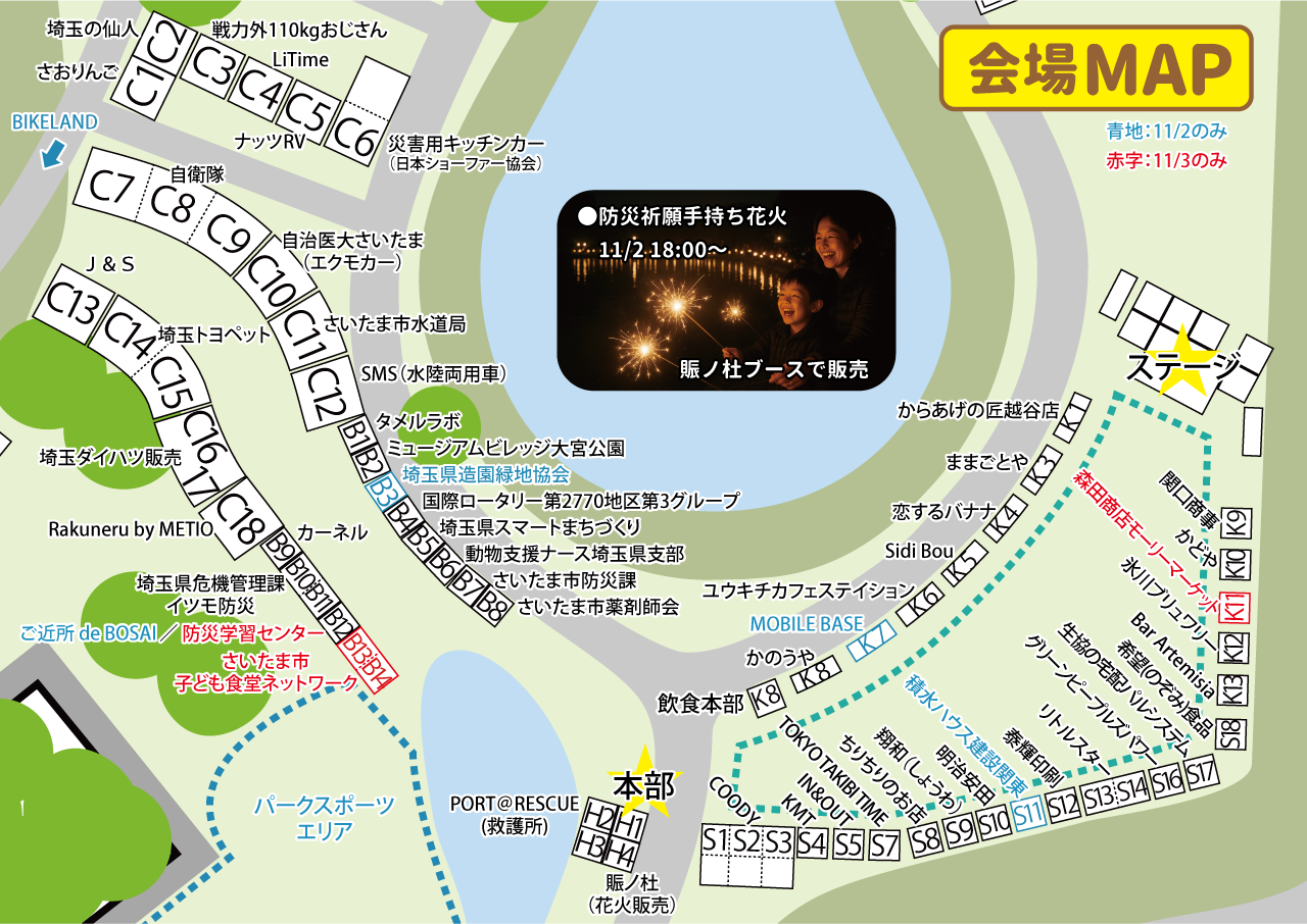 各出店者の詳細については、大宮第二公園防災秋まつりのWebサイトをご確認ください。