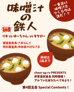 • 「一番うまい味噌汁をつくるのは誰だ!?」